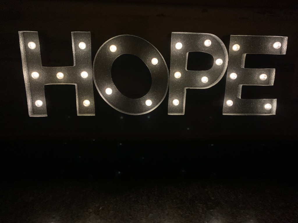 I was going to bed the other night and noticed my “hope” sign was still on.
