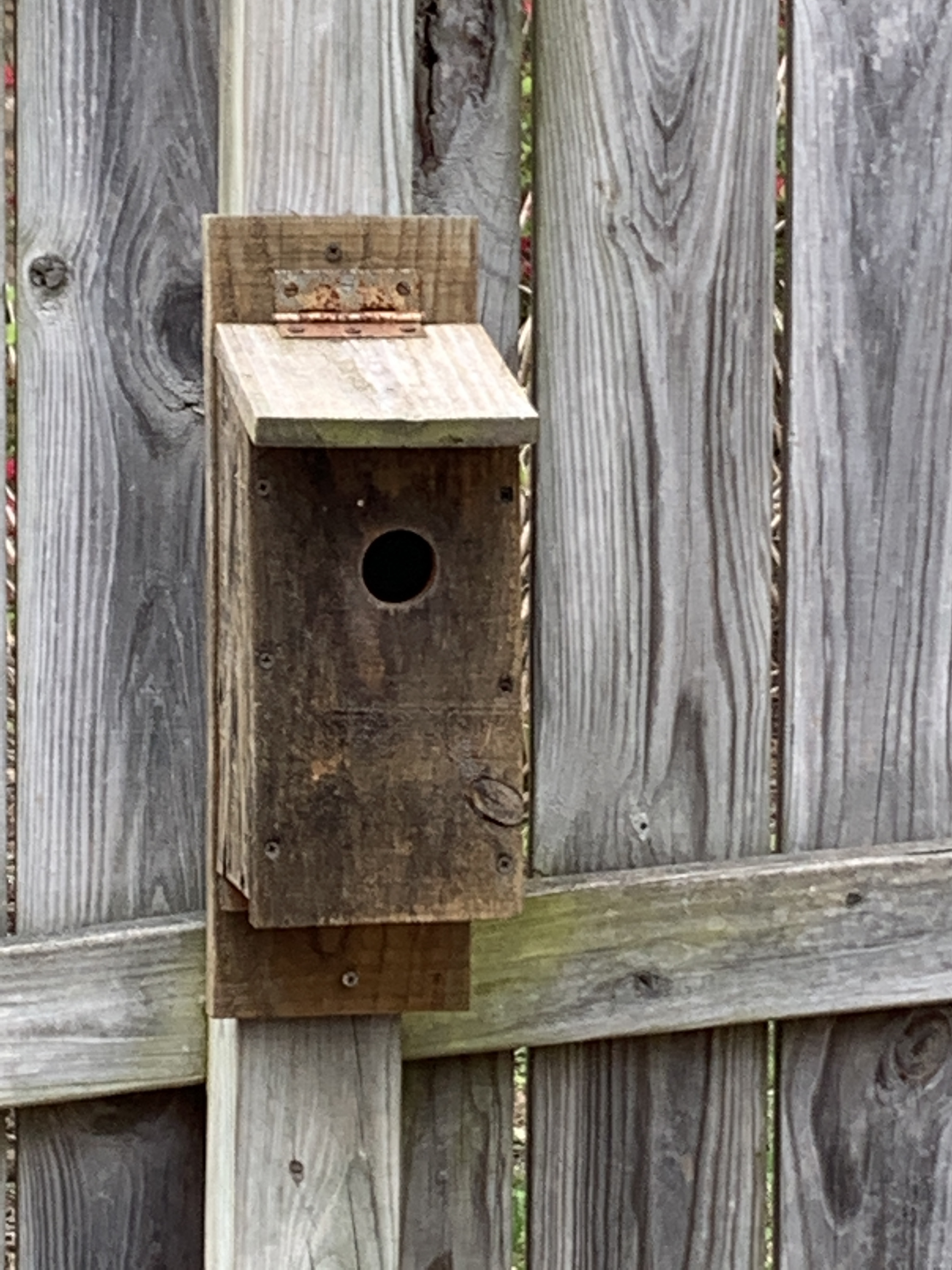 A few years ago my dad built a birdbox with my daughter. Every year, we have Eastern Bluebirds that visit and build nests in this box, lay eggs, and sometimes have babies.